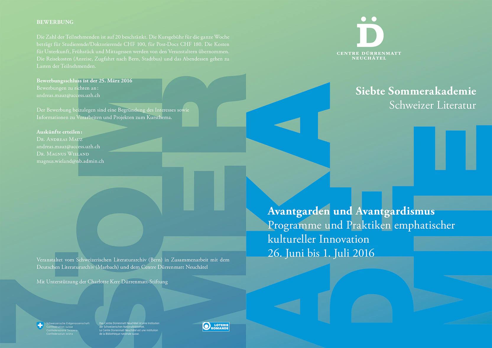 7. Sommerakademie Schweizer Literatur: Avantgarden und Avantgardismus. Programme und Praktiken emphatischer kultureller Innovation