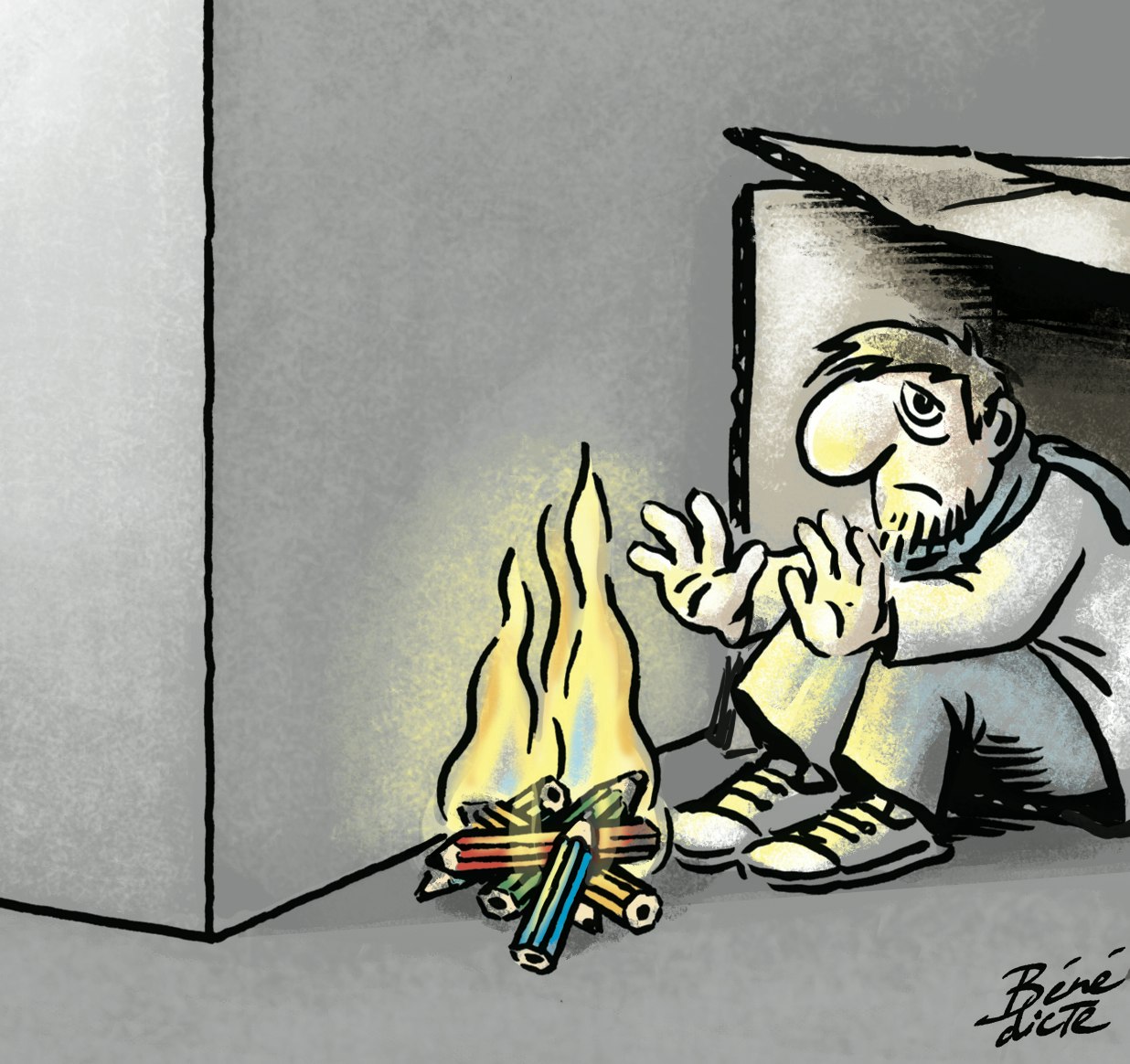 Née en 1972 à Lausanne, Bénédicte publie ses premiers dessins d’humour à l’âge de 14 ans. Elle part à Bruxelles étudier la bande dessinée avant de revenir en Suisse. En 2009, la création de Vigousse lui ouvre les portes du dessin de presse et de ses personnages à gros nez. En parallèle, elle dessine pour le Courrier, l’Hebdo, et depuis 2014, elle signe le dessin éditorial du quotidien 24heures.