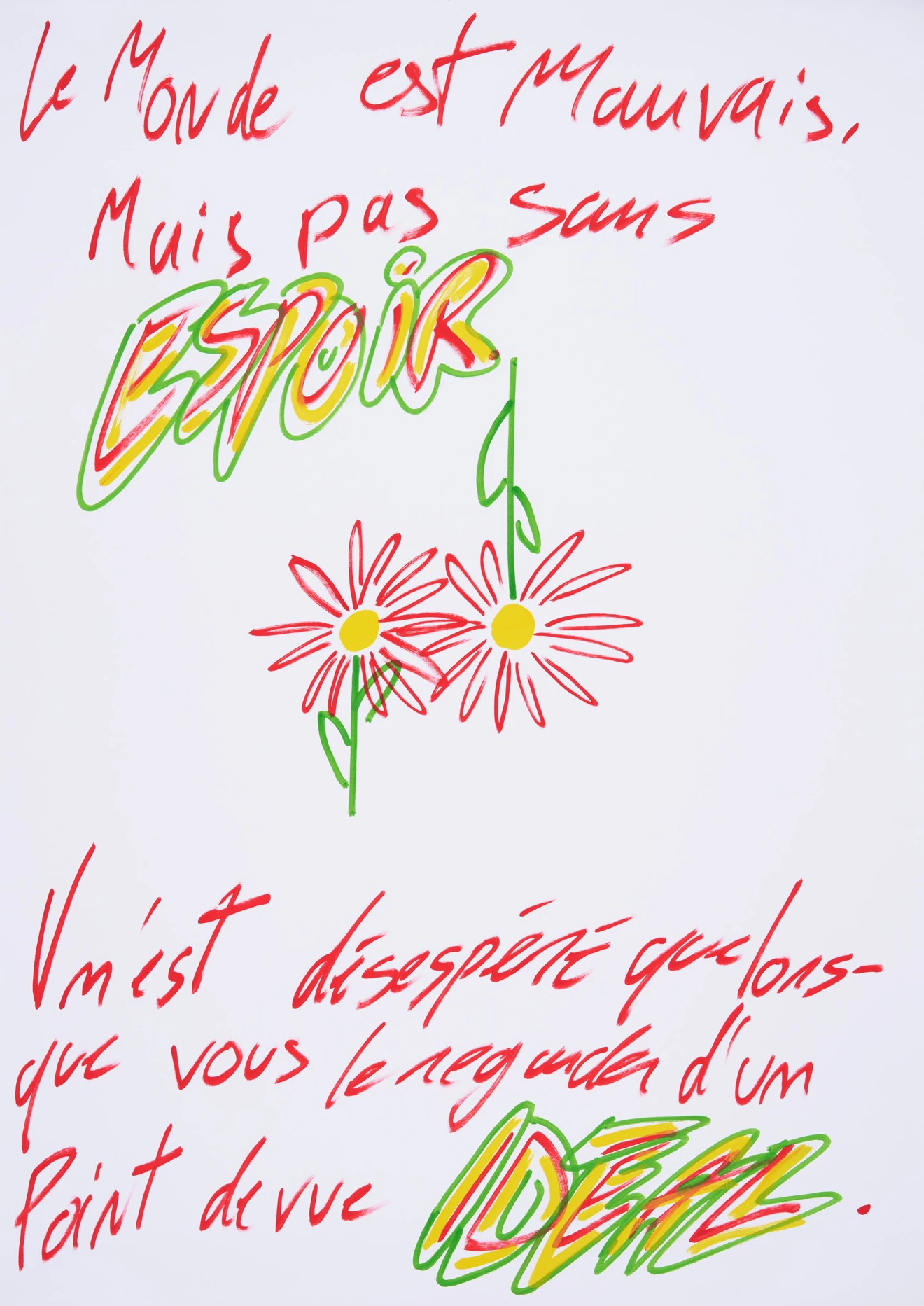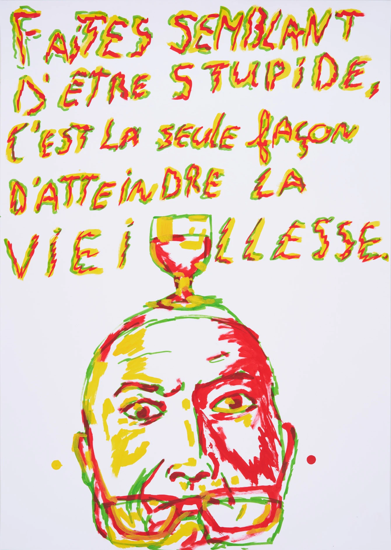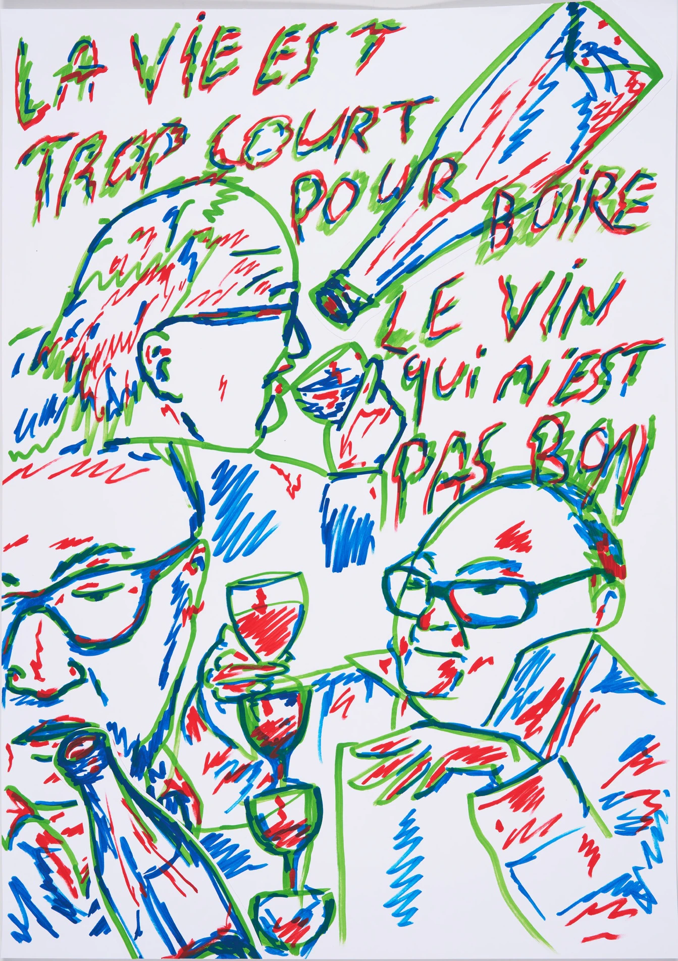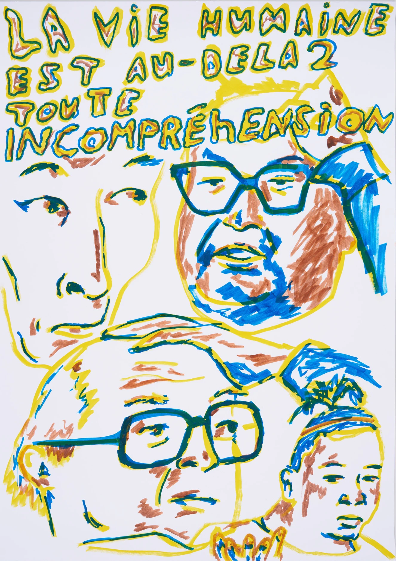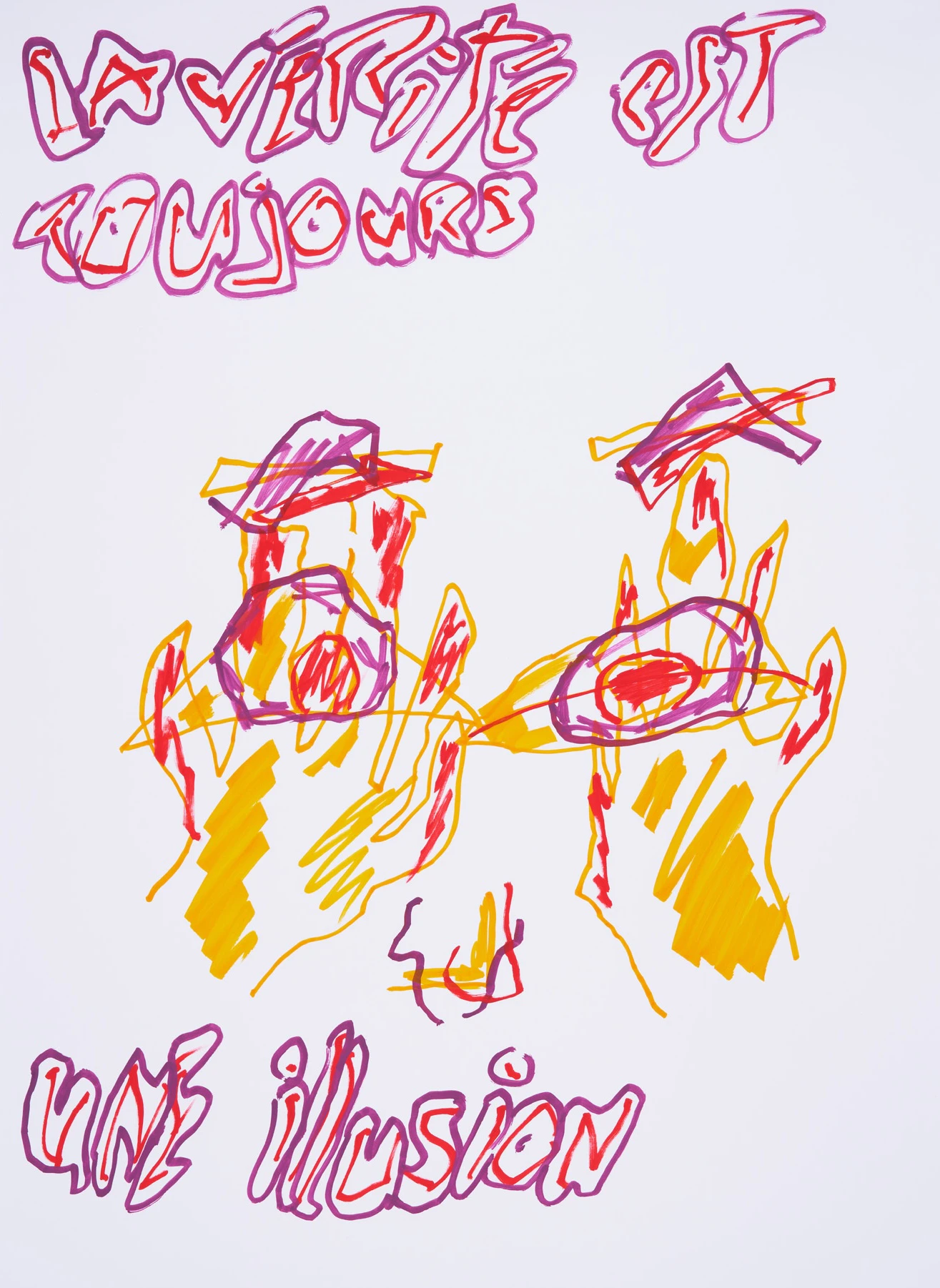 Auf ihre eigene Art illustriert sie mit Acrylmarkern eine Reihe von Dürrenmatts «Kultsätzen», wobei sie sich von seinem karikaturistischen Stil, seiner Spontaneität und seiner Ironie inspirieren lässt.