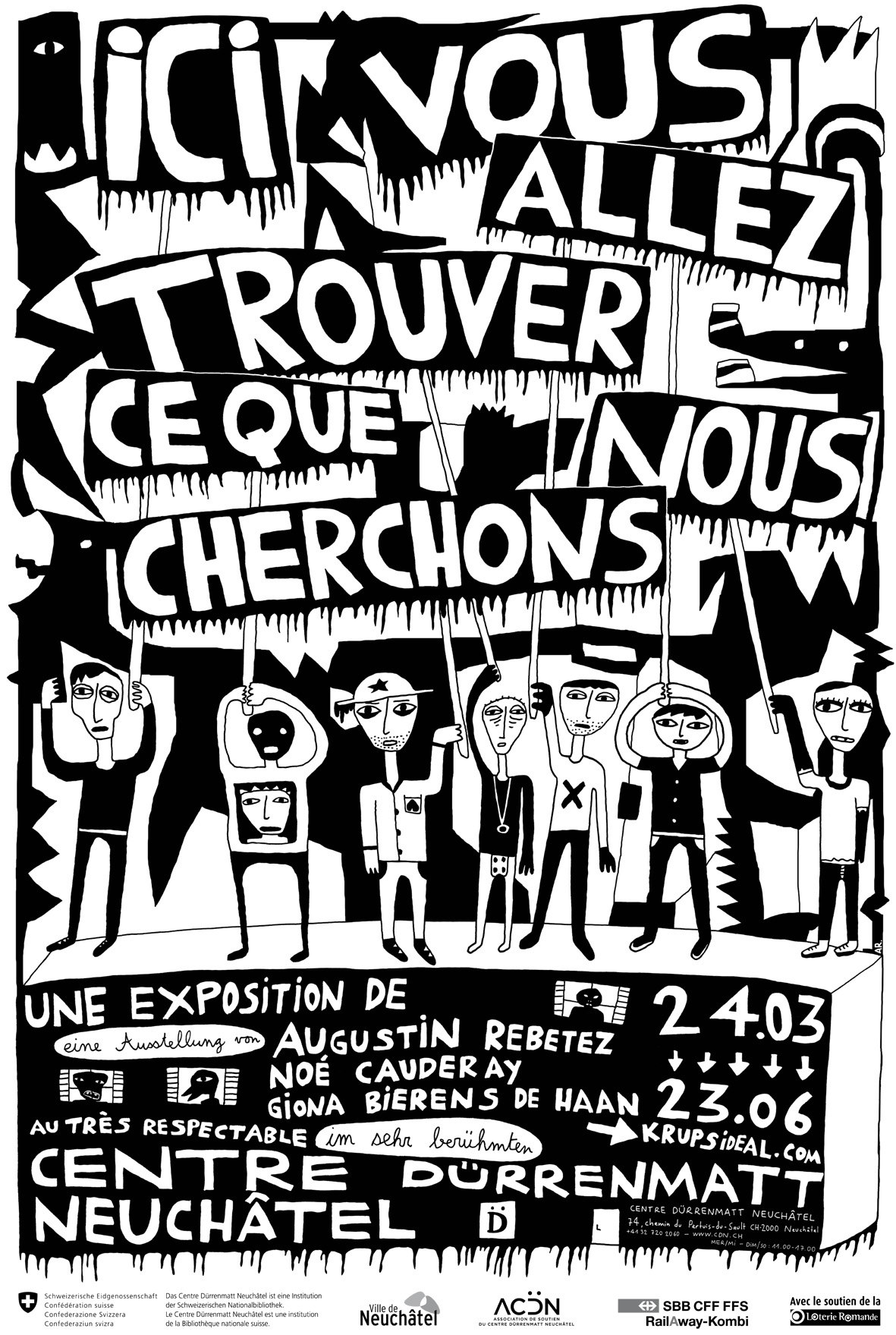 Vernissage der Ausstellung "Augustin Rebetez, Noé Cauderay & Giona Bierens de Haan - HIER FINDEN SIE, WAS WIR SUCHEN"