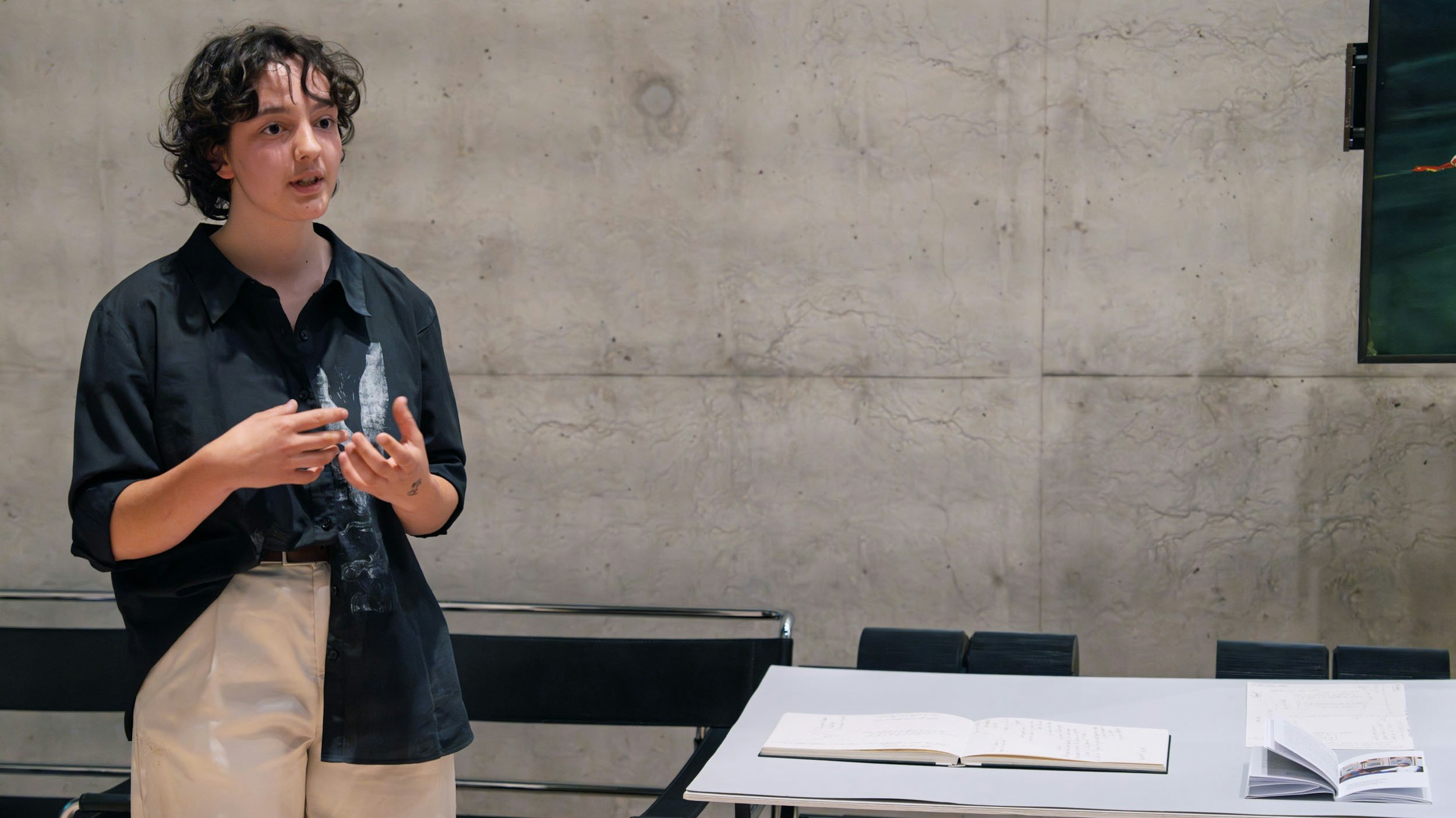 Wer das CDN besucht, betritt Dürrenmatts Zuhause. An dessen Wohn- und Schaffensort tauchten die jungen Künstlerinnen und Künstler vollkommen in die Welt des Schweizer Schriftstellers und Malers ein. Das CDN, das oberhalb der Stadt liegt, bietet einen einzigartigen Blick auf See und Berge – und damit den perfekten Ort für geistige Auseinandersetzung. 38 Jahre lang war Dürrenmatt hier zuhause, hier hat er den grössten Teil seines Werkes geschaffen. An diesem Ort Zeit zu verbringen, bedeutet auch, sich Dürrenmatts Person anzunähern und sich mit Fragen über die eigene Arbeitsweise auseinanderzusetzen. Alle Teilnehmenden fanden einen persönlichen Zugang zu Dürrenmatt und seiner kreativen Umgebung. Sie haben sich an ihm orientiert, sich ihm gestellt und so auch den eigenen Schaffensprozess überdacht.