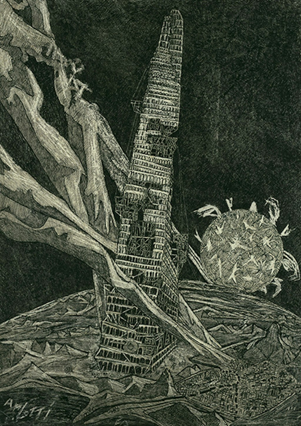 The exhibition explores the motif of the Tower of Babel and the theme of hubris, a feeling of pride that drives humans to excess, in the works of Friedrich Dürrenmatt and other artists.
