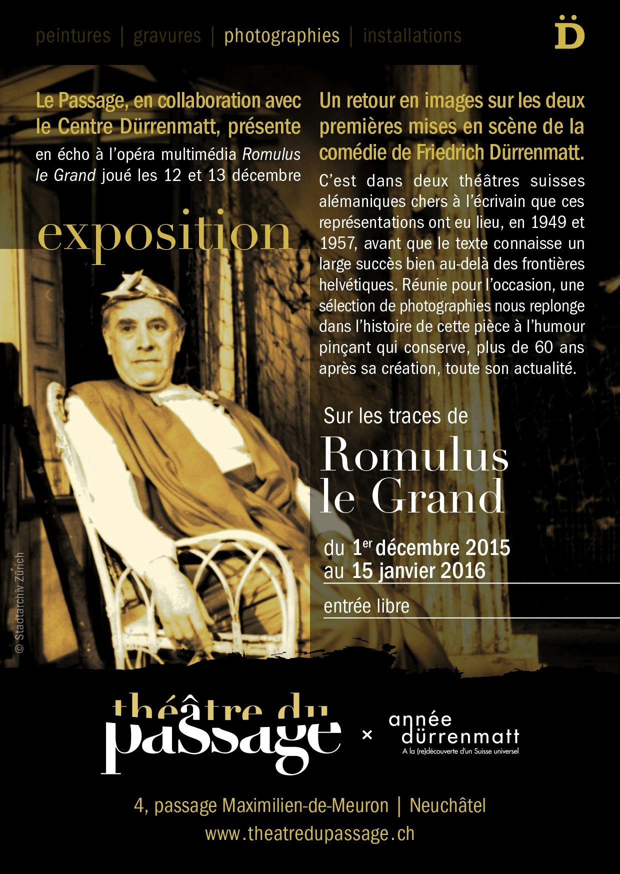 Extra-muros : Accrochage « Sur les traces de Romulus le Grand » au Théâtre du Passage à Neuchâtel