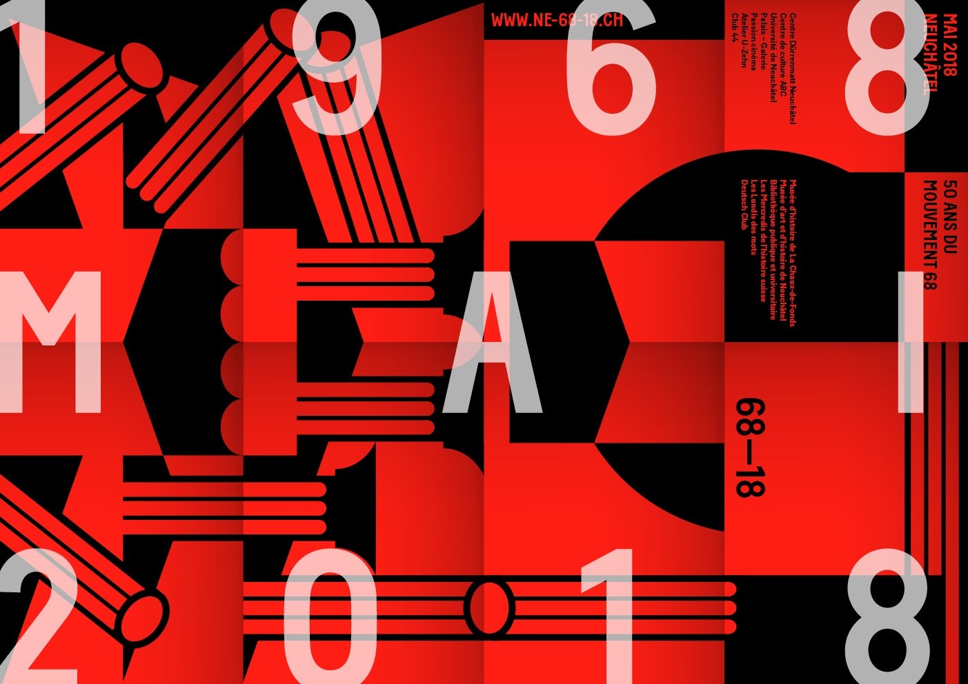 Pour marquer ce cinquantenaire, de nombreuses institutions et acteurs culturels du canton organisent plus de 20 manifestations : expositions, films, conférences, débats et performances, d’avril à octobre 2018. Programme.