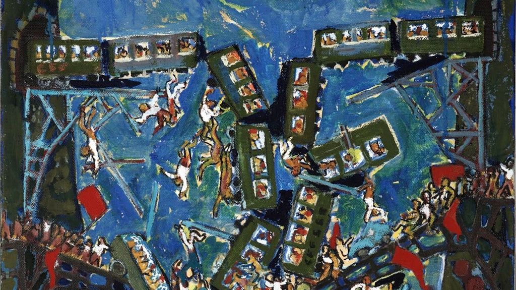 Chez Dürrenmatt, la catastrophe se décline en trois degrés : individuelle, collective et cosmique. La présence de cette thématique dans l’œuvre de l’écrivain et peintre s’explique par le contexte de la guerre froide qui a duré la majeure partie de sa vie adulte. Alors le désastre semblait pour beaucoup inévitable, montrer la probabilité, peut-être même l’imminence de la destruction et contester ainsi la propagande idéologique, Dürrenmatt en a fait l’une de ses missions principales.