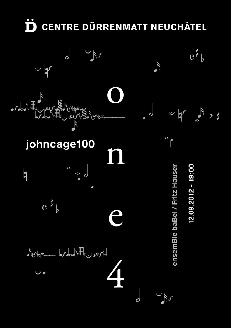 One4 fait partie d'un vaste projet de l'ensemBle baBel qui réalise durant une année 100 performances pour célébrer le 100ème anniversaire de la naissance de John Cage (1912-1992).