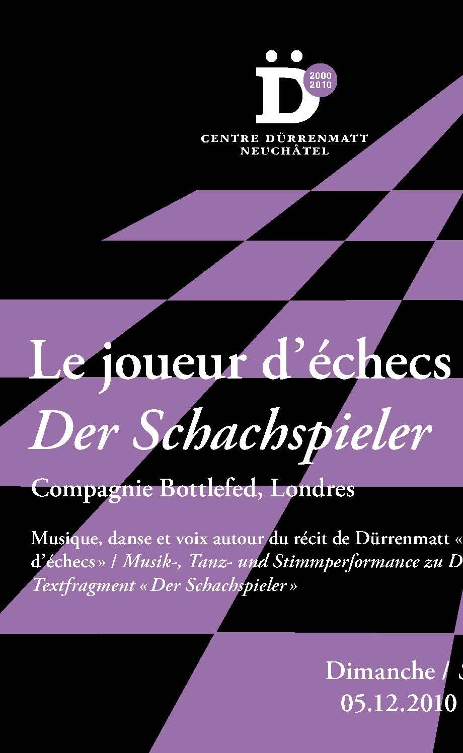 pluridisciplinaire conjuguant danse, musique et texte sur le thème du jeu d'échecs, dont la dimension métaphorique a passionné Dürrenmatt. La création est confiée à Kathrin Yvonne Bigler, chorégraphe suisse installée à Londres. Elle collaborera avec Daniel Woodtli, trompettiste, et Rebeca Fernandez Lopez, danseuse (partenaire de la compagnie de K.Y. Bigler Bottlefed).