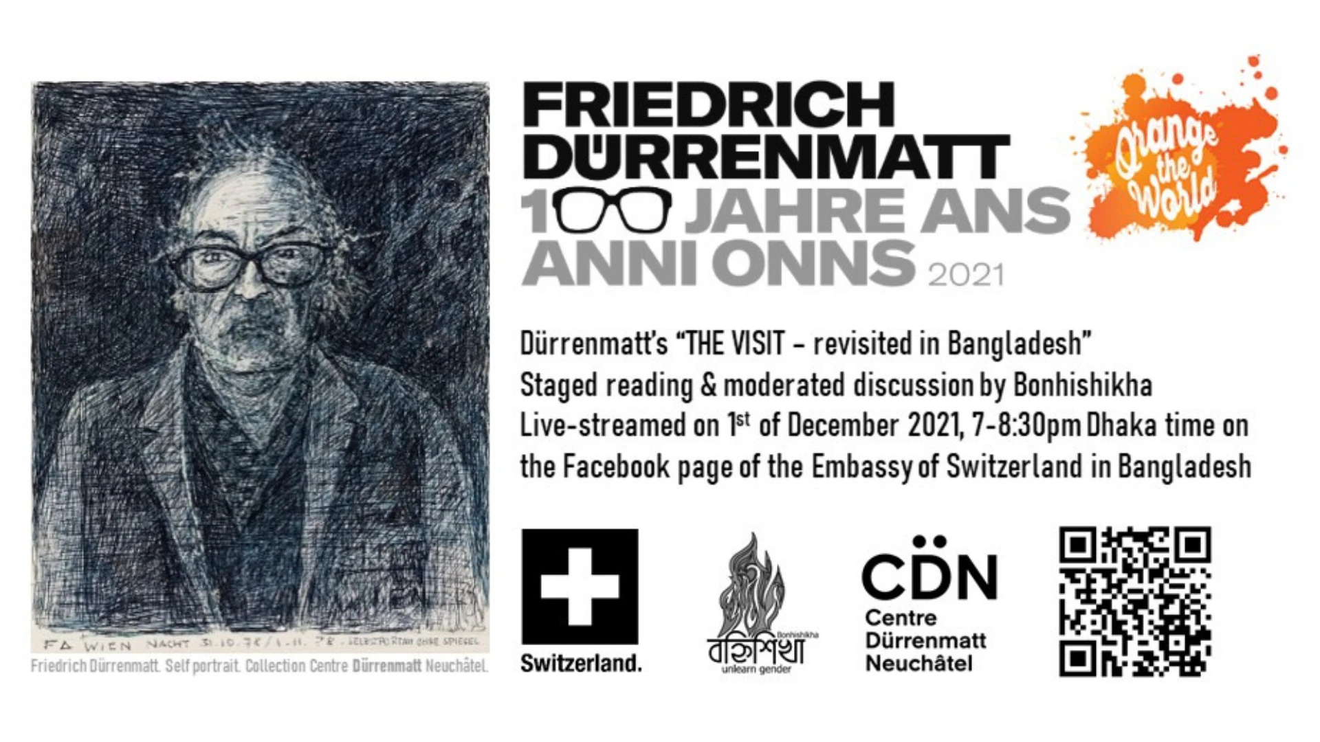 For the centennial of Friedrich Dürrenmatt's birth and 16 days of activism against gender-based-violence, feminist organization Bonhishikha stages a live reading and moderated discussion of Dürrenmatt’s play “The Visit”.