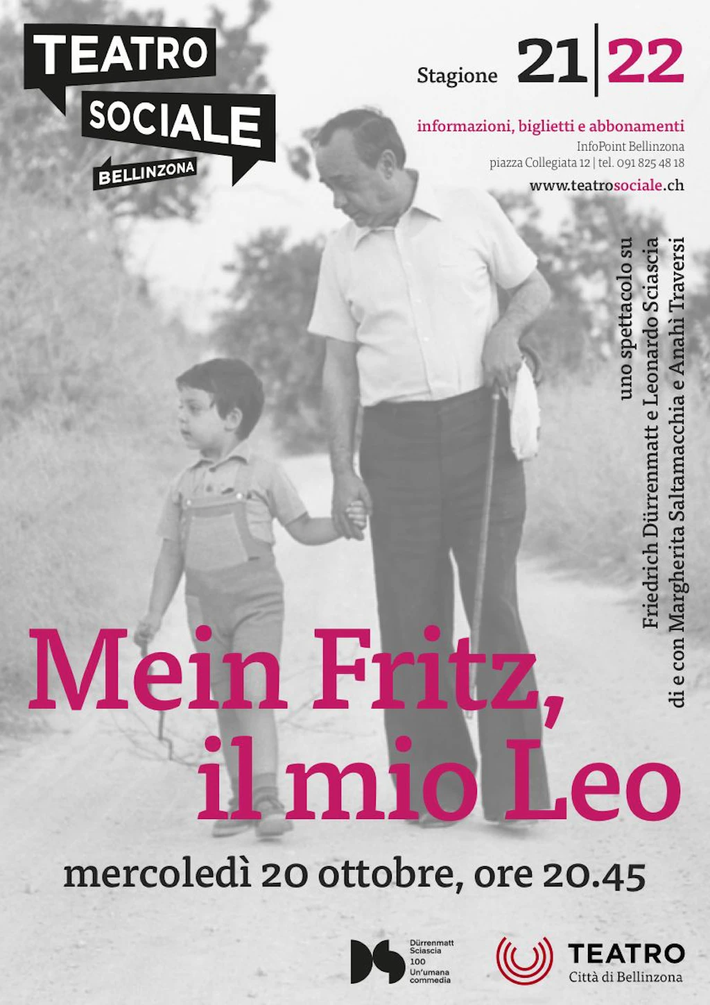 Da materiali di e su Friedrich Dürrenmatt e Leonardo Sciascia. In questo spettacolo fatto di materiali diversi (testi letterari, interviste, registrazioni sonore, fotografie, …) proviamo almeno ad evocarli attraverso uno sguardo intimo su di loro, quello di chi poteva chiamare Dürrenmatt “mein Fritz” e Sciascia “il mio Leo”.