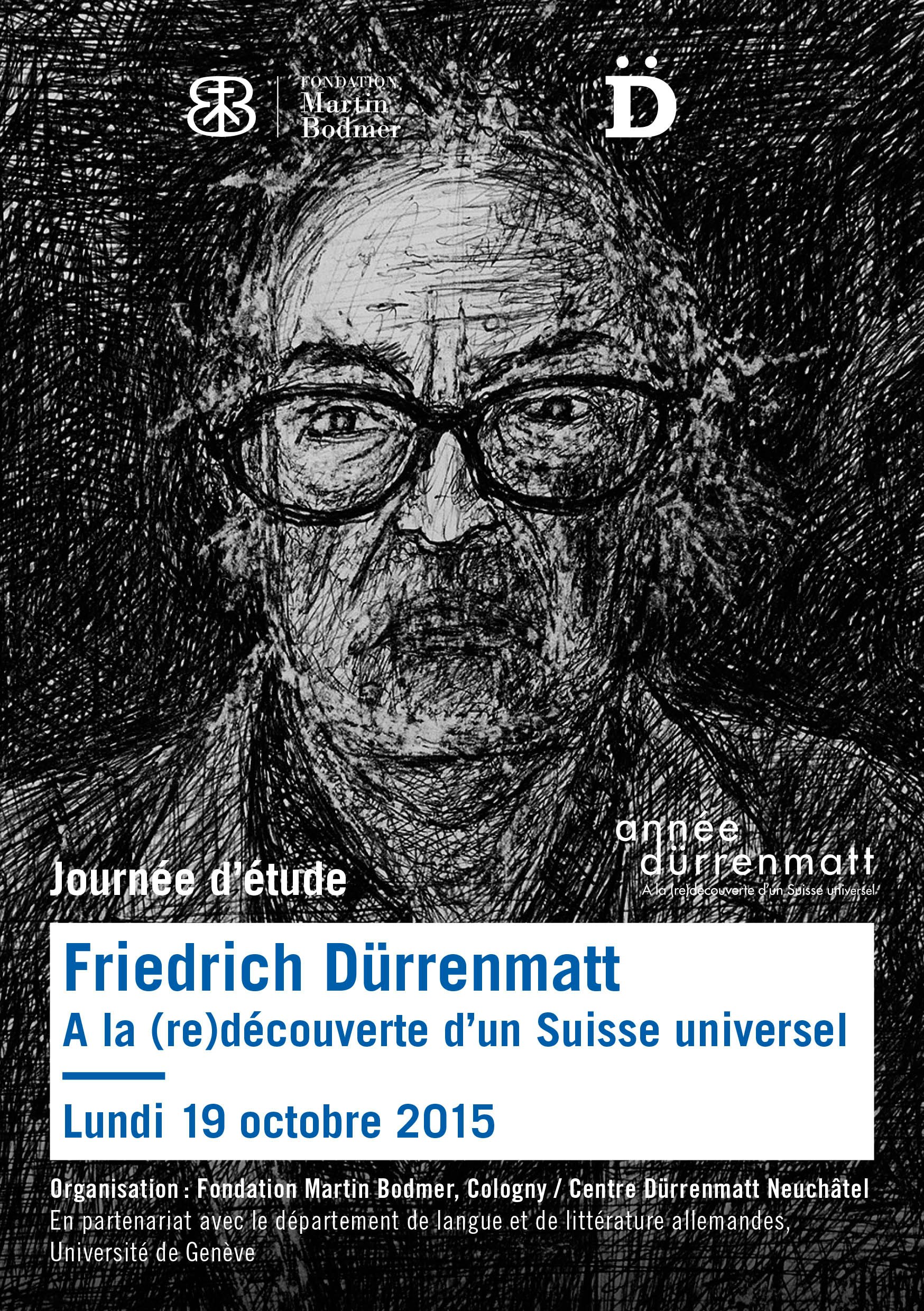 Dans le cadre de l’Année Dürrenmatt a lieu une journée d’étude sur l’oeuvre pictural et littéraire de Friedrich Dürrenmatt à la Fondation Martin Bodmer à Cologny, en partenariat avec le Centre Dürrenmatt Neuchâtel et le Département de langue et de littérature allemandes de l’Université de Genève.